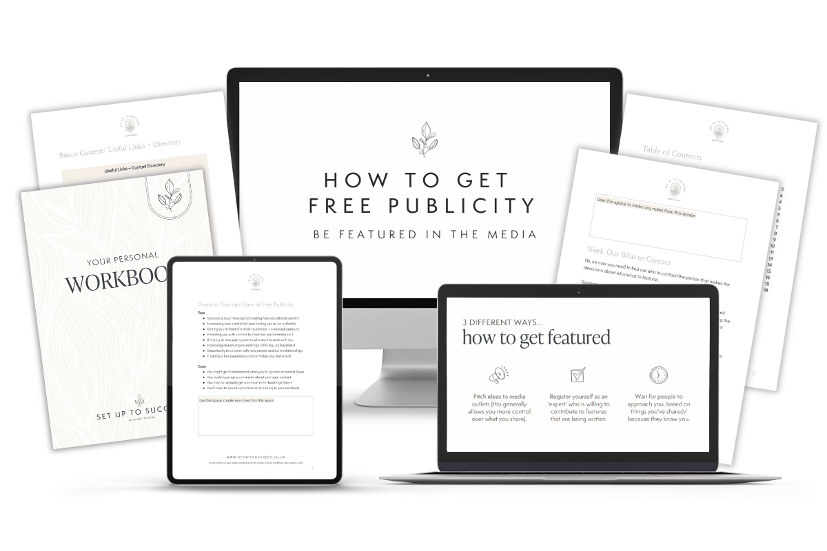 Now, with multiple features in national magazines, guest blog posts, podcast interviews, newspaper contributions and journal articles under my belt, I’m sharing my proven process to securing free publicity in a way that suits your business goals, your personality and your message.
